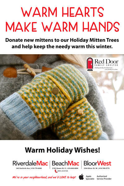 RiverdaleMac is building a mitten tree. They are collecting mittens for the Red Door Family Shelter. If you're able, please drop off a pair of mittens (any size) and help them build a wondrous tree and share some warmth with those who are in need.